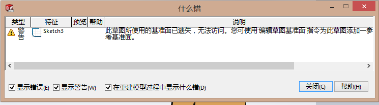 3)草图基准面遗失