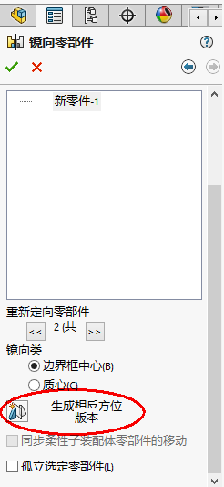 2)生成相反方位的零部件