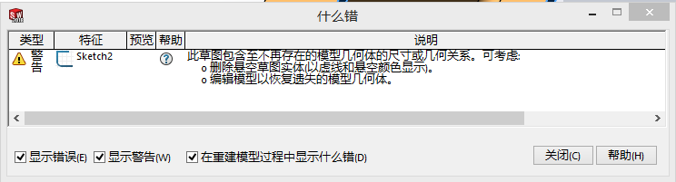 2)草图约束关系错误:尺寸及几何关系