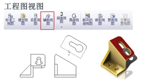 (1)倾斜面:辅助视图→点击倾斜的线