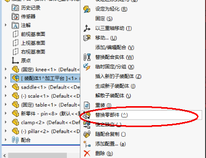 设计树那边点击【替换零部件】